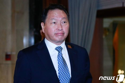 (서울=뉴스1) 안은나 기자 = 최태원 대한상공회의소 회장(SK그룹 회장)이 8일 오전 서울 중구 롯데호텔에서 기시다 후미오 일본 총리와 경제6단체장 간담회에 참석하기 위해 이동하고 있다. 2023.5.8/뉴스1