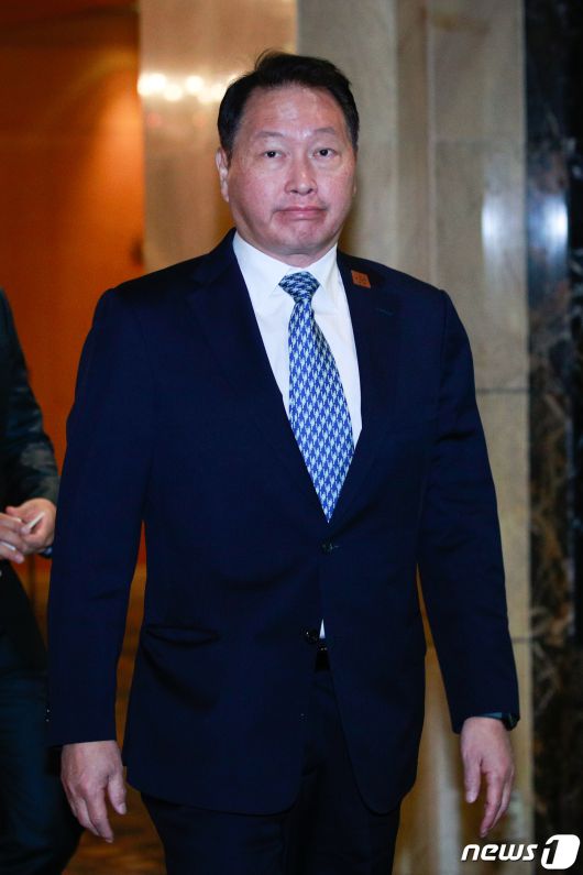 (서울=뉴스1) 안은나 기자 = 최태원 대한상공회의소 회장(SK그룹 회장)이 8일 오전 서울 중구 롯데호텔에서 기시다 후미오 일본 총리와 경제6단체장 간담회에 참석하기 위해 이동하고 있다. 2023.5.8/뉴스1coinlocker@news1.krCopyright ⓒ 뉴스1. All rights reserved. 무단 전재 및 재배포 금지.
