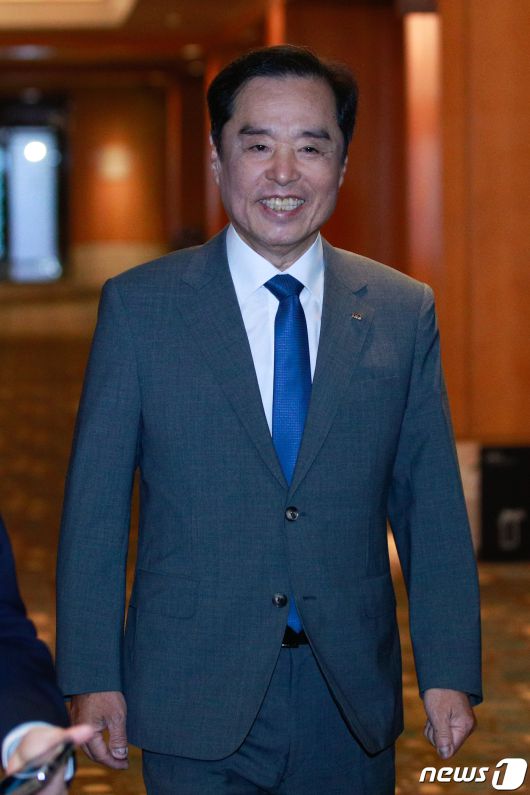 (서울=뉴스1) 안은나 기자 = 김병준 전국경제인연합회 회장 직무대행이 8일 오전 서울 중구 롯데호텔에서 기시다 후미오 일본 총리와 경제6단체장 간담회에 참석하기 위해 이동하고 있다. 2023.5.8/뉴스1