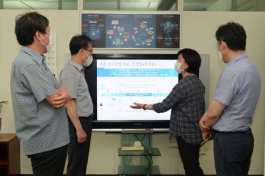 방승찬 ETRI 원장(왼쪽 두번째)이 연구진과 함께 6G 연구개발 방향에 대해 논의하고 있다. ETRI 제공 |