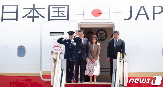(성남=뉴스1) 이재명 기자 = 기시다 후미오 일본 총리가 8일 경기도 성남시 서울공항에서 출국하기 전 인사하고 있다. 2023.5.8/뉴스1
