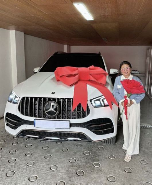 사진 속 송가인 어머니는 송가인이 선물한 외제차 앞에 미소 지으며 포즈를 취하고 있다. 게다가 역대급 크기의 카네이션을 들고 환한 미소를 짓어 기쁜 마음을 맘껏 드러냈다.