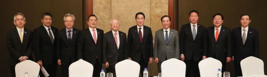 기시다 후미오(岸田文雄) 일본 총리가 국내 경제6단체장 등 기업인들을 만나 양국 경제 협력 방안을 논의했다. 제3국 공동 진출과 광물 자원 협력, 소부장(소재·부품·장비) 기술 협력 등 양국 경제에 시너지를 낼 방안들이 테이블에 올랐다. 참석자들은 기시다 총리가 “정치 문제를 풀어야 양국 기업 활동도 확대될 수 있다. 기업들이 협력에 많이 나서 달라”는 뜻을 밝혔다고 전했다.