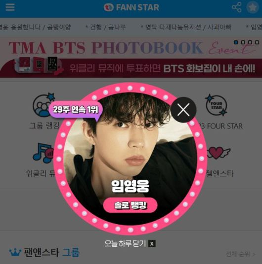 '팬앤스타' 5월 첫째 주 솔로 랭킹 투표에서 2479만 5935표 득표