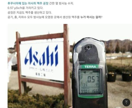 글쓴이는 “후쿠시마에 있는 아사히맥주 공장은 지금도 맥주를 생산하고 있다. 공기, 흙, 지하수 모두 방사능에 오염된 곳에서 생산된 맥주를 누가 마시는 걸까?”라고 적었다.