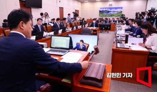 9일 국회에서 열린 외교통일위원회 전체회의에서 김태호 위원장이 의사봉을 두드리고 있다. 사진=김현민 기자 kimhyun81@ |