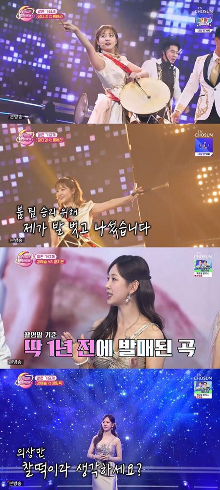이날 박서진의 ‘흥해라’로 무대에 오른 정다경은 한 달 동안 연마한 장구 퍼포먼스로 현장 분위기를 한껏 끌어올린 것은 물론, 행운권 라운드에 윤서령의 ‘척하면 척이지’로 무대를 꾸몄다.