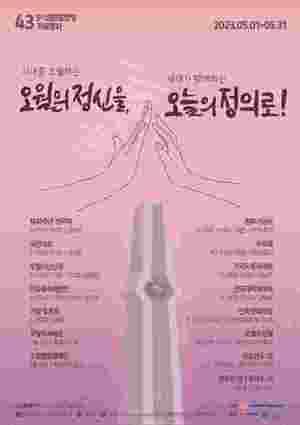 10일 광주시에 따르면 62개 단체로 구성된 ‘제43주년 5·18 민중항쟁 기념행사위원회’(행사위)는 지난 3월 시민 공모를 통해 ‘오월의 정신을, 오늘의 정의로!’를 올해 기념행사 공식 구호로 선정했다.