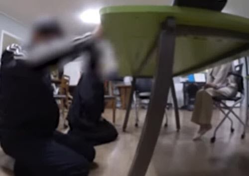 A씨 남매 앞에서 무릎을 꿇고 있는 A씨 아버지와 계모의 모습. (사진=유튜브 ‘궁금한Y’ 채널 캡처) |