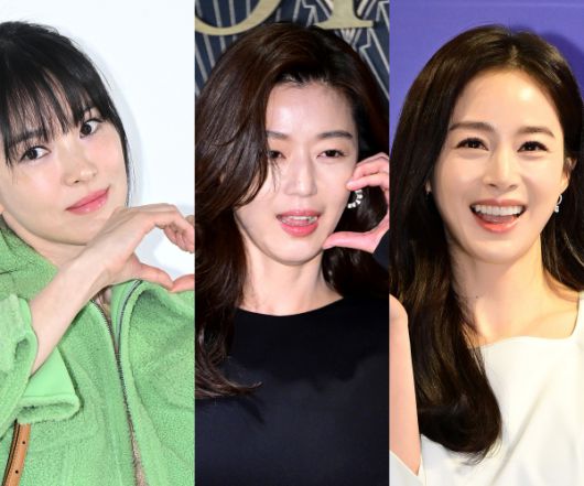 송혜교, 전지현, 김태희는 그간 브랜드 포토월이나 공항 출국길에서 항상 시크하고 우아한 매력을 보여줬다. 시크한 표정과 포즈로 범접하기 어려운 포스를 뿜었다.