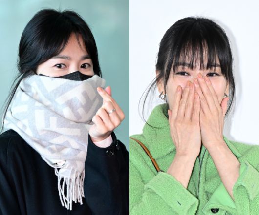 송혜교 또한 하트 포즈로 ‘희귀샷’을 만들어 팬들에게 새로운 즐거움을 주고 있다. 송혜교는 지난 2월 서울 동대문 DDP 아트홀에서 열린 이탈리아 하이엔드 브랜드의 포토콜 행사에서 모두를 깜짝 놀라게 했다. 취재진의 요청에 하트 포즈를 취한 것.