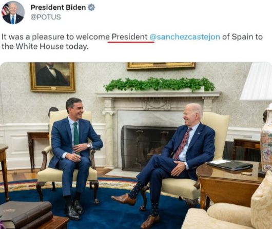 “오늘 백악관에서 페드로 산체스 스페인 ‘대통령’(President)을 환영할 수 있어 무척 즐거웠습니다.”