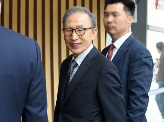 지난달 26일 이명박 전 대통령이 연극 ‘파우스트’를 관람하기 위해 서울 강서구 LG아트센터에 들어서는 모습. 사진=뉴스1 |