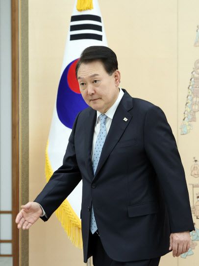 윤석열 대통령이 12일 오후 서울 용산 대통령실 청사에서 열린 주한대사 신임장 제정식을 마친 뒤 이동하고 있다. (사진=뉴시스) |
