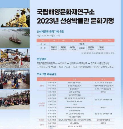 [이데일리 이윤정 기자] 문화재청 국립해양문화재연구소는 5월부터 10월까지 총 11회에 걸쳐 목포 바다 위에서 펼쳐지는 ‘선상박물관 문화기행’을 운영한다. 오는 19일 국민과 함께 이번 행사의 시작을 알리는 출항식을 개최한다.