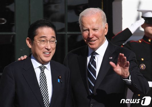 조 바이든 미국 대통령이 지난 1월13일(현지시간) 취임 후 처음으로 워싱턴을 방문한 기시다 후미오 일본 총리와 백악관 앞에서 환영을 하고 있다. ⓒ AFP=뉴스1 ⓒ News1 우동명 기자 |