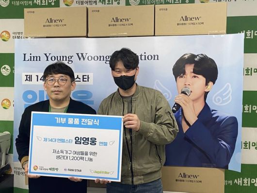 임영웅 엔젤은 더불어함께새희망에 생리대 1200팩을 전달했다. /팬앤스타 |