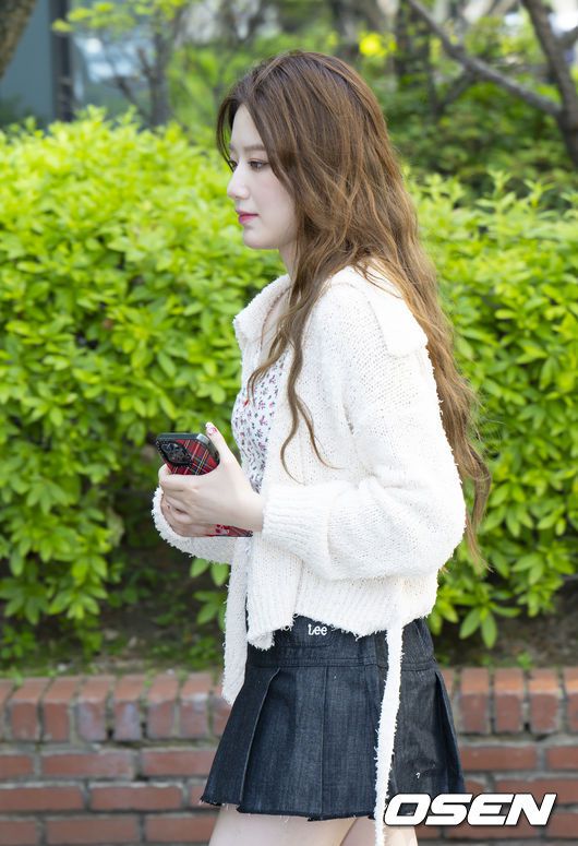 [OSEN=김성락 기자] 16일 오후 서울 영등포구 여의도 KBS 신관에서 KBS 2TV ‘더 시즌즈-최정훈의 밤의 공원’ 녹화가 진행됐다. 여자아이들 슈화가 취재진을 향해 포즈를 취하고 있다. 2023.05.16 /ksl0919@osen.co.kr