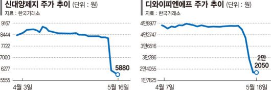 16일 한국거래소에 따르면 디와이피엔에프는 이날 코스닥시장에서 전 거래일과 동일한 2만2050원에 거래됐다. 장중 한때 주가는 전날보다 5.44% 하락한 2만850원으로 신저가를 경신했다.