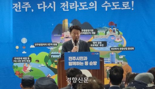 우범기 전북 전주시장이 11일 호성동 주민센터를 찾아 ‘주민과의 대화’를 하고 있다. 김창효 선임기자 |