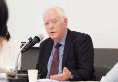 웨이드 앨리슨 영국 옥스퍼드대학교 명예교수가 15일 서울 종로구 HJ비즈니스센터에서 ‘저선량 방사선 영향과 후쿠시마 오염수 논란-공포가 집어삼킨 과학’을 주제로 열린 기자간담회에서 발언하고 있다. [연합] |