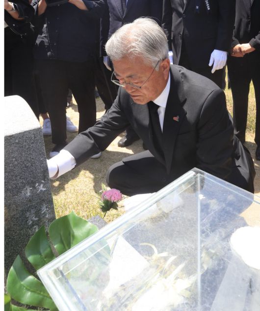 [광주=뉴시스] 김혜인 기자 = 문재인 전 대통령과 부인 김정숙 여사가 17일 오전 광주 북구 망월동 민족민주열사의 묘지를 참배하고 있다. 2023.05.17.hyein0342@newis.com <저작권자ⓒ 공감언론 뉴시스통신사. 무단전재-재배포 금지.> /사진=뉴시스화상 |