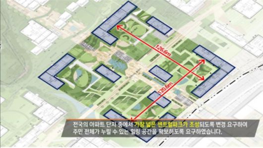 당시 주민대표회의는 40층 주동이 외곽에 배치돼 주변과의 단절을 초래한다는 점, 실거주 선호도가 낮은 북동향·북서향 세대가 많이 배정된 점, 세대간 마주보는 'ㅁ'자 단지배치로 사생활 보호가 어렵다는 점, 저층 위주 설계로 조망권이 갖춰지지 않는다는 점 등을 문제로 지적했다.