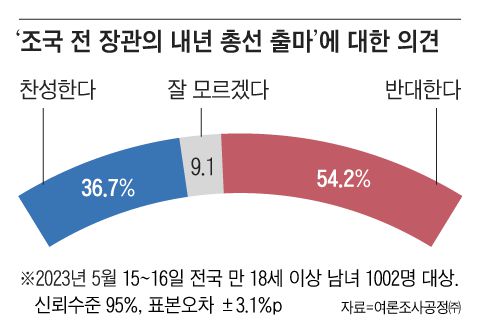 조국 전 법무부 장관의 내년 총선 출마설과 관련해 국민 절반 이상은 출마를 반대한다는 여론조사 결과가 18일 나왔다.