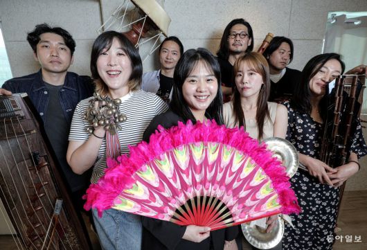 요즘 한국보다 해외에 있는 시간이 더 많은 이들은 20일 전북 전주 국립무형유산원에서 열리는 개원 10주년 개막 공연 피날레 무대에 오른다. 전통 국악을 전공한 이들에게 이 무대는 더욱 각별하다. 유월은 “해외 공연보다 국내 공연이 더 반갑다. 우리에게 돌아올 자리가 있다는 안도감이 들어서”라고 말했다. 서도민요를 전공한 유월은 “내 전공은 국악 중에서도 비주류라 설 수 있는 무대가 거의 없었다. 노래를 너무 하고 싶어 악단광칠에 합류한 덕분에 이제 한국에서도 내 소리를 낼 수 있는 무대와 기회가 생겼다”며 웃었다.