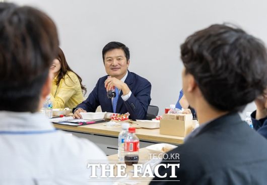 공무상 비밀누설 혐의로 기소된 김태우 서울 강서구청장이 집행유예가 확정돼 직을 상실했다. 김태우 구청장이 4월 26일 공무원들과 이야기하는 모습. /강서구 제공 |