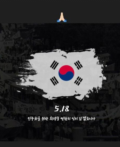 송가인은 18일 자신의 SNS에 “민주화를 위한 희생을 영원히 잊지 않겠습니다”라는 글을 게재했다. 이와 함께 기도하는 이모티콘과 태극기 이미지를 게재하며 희생자들을 추모했다.