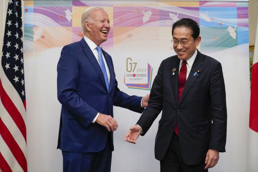 일본 도착 첫날 미-일 정상회담을 마친 바이든 대통령은 19일부터 사흘 동안 주요 7개국 정상회의와 관련된 실무회의·만찬·기자회견 등에 참여한다. 미국은 앞선 17일 바이든 대통령이 연방정부 부채 한도 협상을 이유로 일본만 방문하기로 했다면서, 예정했던 파푸아뉴기니·오스트레일리아 방문을 취소했다. 바이든 대통령의 사정 때문에 3개국 정상회담은 성사되더라도 매우 짧게 열릴 수밖에 없게 됐다.