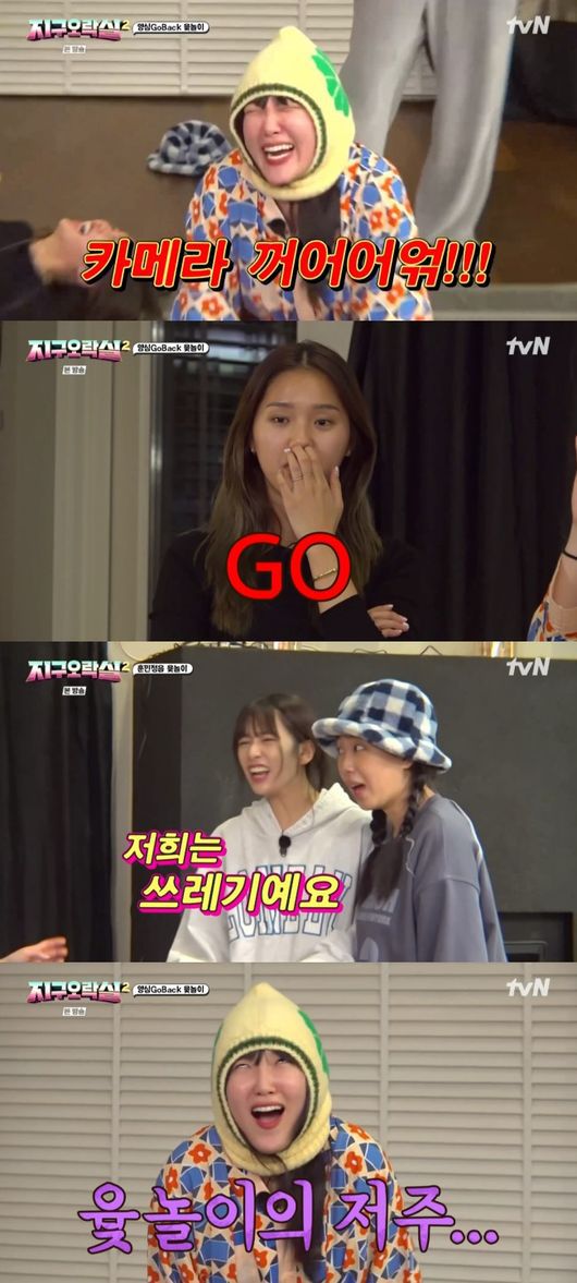 [OSEN=선미경 기자] ‘지구오락실2’ 이은지와 미미, 이영지, 그리고 안유진이 윷놀이 지옥에 빠졌다. 3시간 넘게 양심 고백과 윷놀이를 이어가며 역대급 텐션으로 시청자들에게 웃음을 줬다.