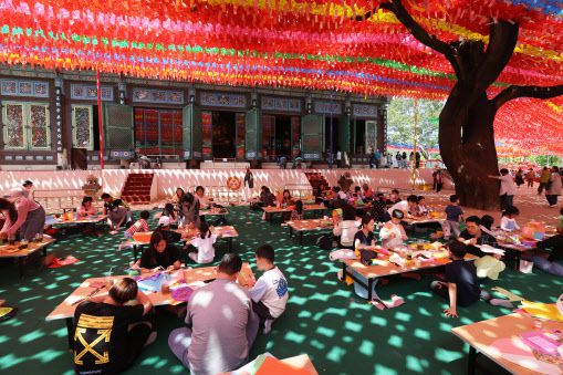 지난 14일 오후 서울 종로구 조계사에서 부처님오신날 맞이 가족이 함께 등을 만드는 ‘도란도란 연등가족’ 행사가 열리고 있다. (사진=연합뉴스) |