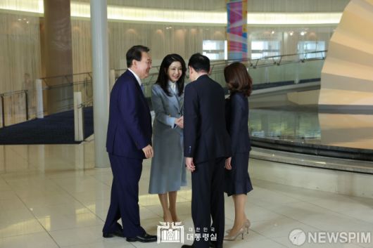[서울=뉴스핌] 윤석열 대통령과 김건희여사가 20일 히로시마 G7 정상회의장에서 열린 G7 정상회의 초청국 환영행사에 참석해 기시다 후미오 일본 총리 부부와 악수하고 있다. [사진=대통령실] 2023.05.20 photo@newspim.com 저작권자(c) 글로벌리더의 지름길 종합뉴스통신사 뉴스핌(Newspim), 무단 전재-재배포 금지
