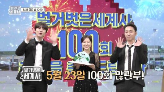 100회 특집을 맞이해 '벌거벗은 세계사'를 함께하고 있는 MC 은지원, 규현, 이혜성이 시청자를 향한 감사 인사와 함께 일문일답을 전했다.