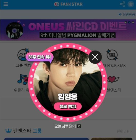 한편 '팬앤스타'는 <더팩트>에서 운영하는 주간 아이돌 랭킹사이트로, 아이돌 투표 및 전광판 서포트를 진행하며 팬덤의 놀이터로 통한다. 그룹랭킹과 솔로랭킹, 포스타랭킹(4세대 아이돌 랭킹) 투표는 매주 월요일 시작되며 아이돌을 좋아하는 팬이라면 누구나 참여할 수 있다.
