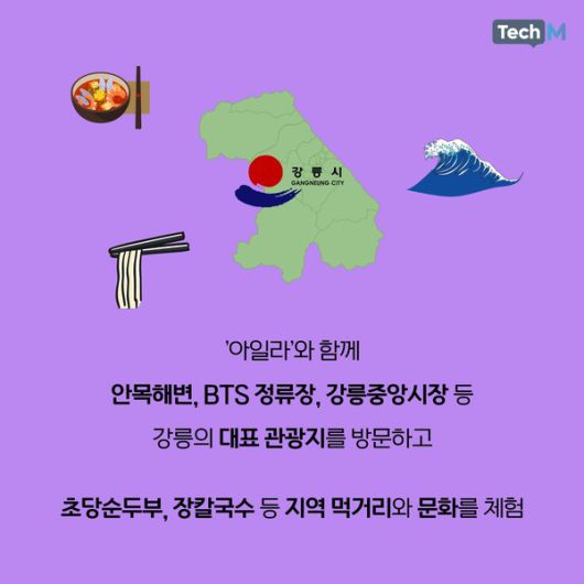 [이아령 에디터] 버추얼 인플루언서 '아일라'가 강릉을 지원하기 위해 나섰다. 아일라는 안목해변, 방탄소년단(BTS) 정류장, 주문진해변, 강릉중앙시장 등 강릉의 대표적인 관광지를 방문하고 초당순두부, 장칼국수 등 지역 먹거리와 문화를 체험하며 네티즌들에게 생생한 '강릉 랜선 여행'을 선보일 계획이다.