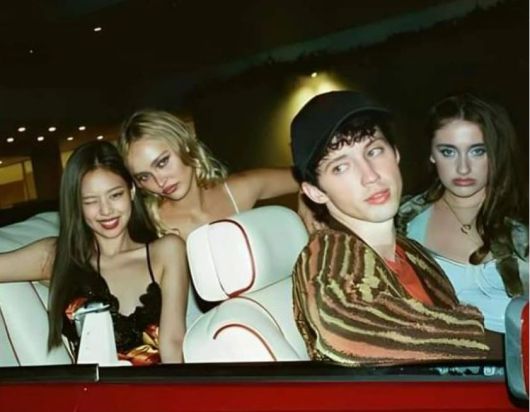 블랙핑크 제니가 ‘제76회 칸 국제영화제’에서 배우 데뷔작인 ‘디 아이돌’ 시사회에 참석해 호주 싱어송라이터 트로이 시반과 함께 포즈를 취하고 있다. [AP 연합] |