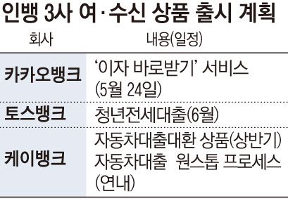 인터넷전문은행이 최근 시장에서 호평을 받고 있는 상품을 연달아 내놓으면 경쟁 구도가 심화하고 있다. 업권 최초로 자동차대출 원스톱 프로세스를 구축하는 등 치열한 가입자 유치 경쟁을 예고했다.