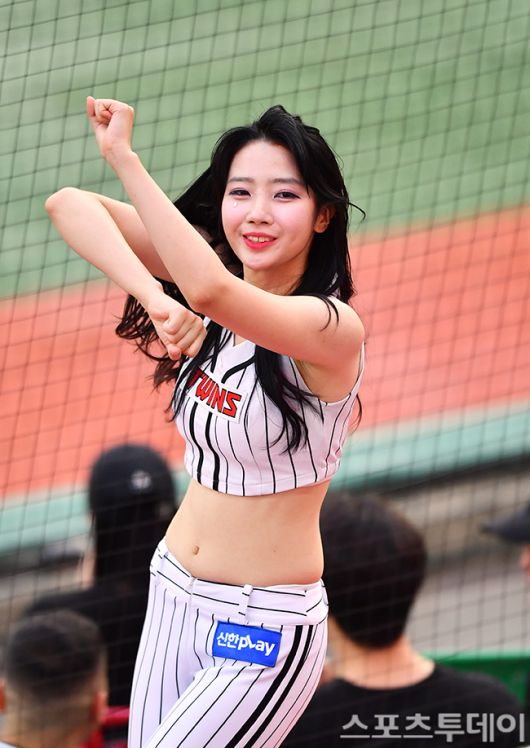 [인천=스포츠투데이 팽현준 기자] 24일 인천SSG 랜더스필드에서 열린 KBO리그 LG와 SSG의 경기, LG 치어리더 오윤솔이 공연을 하고 있다. 2023.05.24. [스포츠투데이 팽현준 기자 sports@stoo.com]
