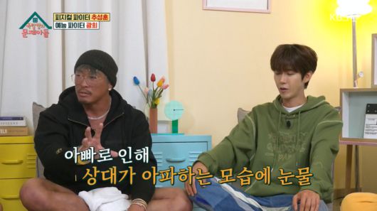 추성훈은 “사랑이가 아빠 경기를 보고 울었다고 했다. 왜 울었냐고 했더니 아빠가 상대를 때리고 상대가 아파하는 모습에 슬퍼하더라”라고 말했다. 그는 “그래서 마음이 좀 이상했다. 그게 내 일인데”라고 씁쓸한 모습을 보였다.