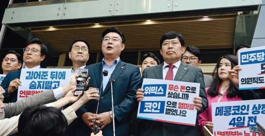 사실 이 로비 의혹은 최근 엉뚱한 방향으로 튀었습니다. 국회 사무처는 게임사 위메이드가 2020년 9월부터 올해 4월까지 국회를 출입한 기록을 공개했는데, 그 명단엔 김 의원이 아닌 국민의힘(허은아·정희용·윤창현)과 더불어민주당(김한규·김성주·오기형·김종민) 의원들이 있었습니다. 야권뿐만 아니라 김 의원의 로비 의혹을 띄우던 여권도 P2E 사태에 휘말린 겁니다.