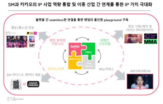 멀티 제작 센터 시스템 도입은 SM 3.0 전략의 핵심으로 5개 제작센터를 통해 지속적인 사업 성과를 담보하고, IP 수익성 극대화를 추진한다는 방안이다. 이 과정에서 카카오와의 사업협력을 통해 IP 가치를 최대화하기 위해 양사 IP사업의 강점과 약점을 상호 보완함으로써 새로운 사업기회를 증대할 예정이다.
