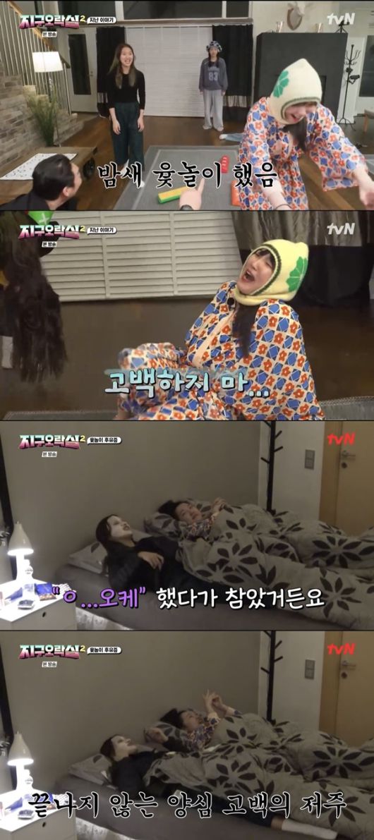 26일 방송된 tvN 예능프로그램 ‘뿅뿅 지구오락실2’(이하 ‘지락실2’)에서는 핀란드에서의 하루를 마무리하는 멤버들(이은지, 미미, 이영지, 안유진)의 모습이 전파를 탔다.