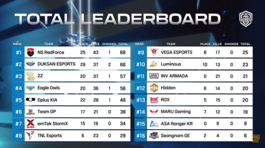 결국 디플러스 기아가 루미노스를 마지막으로 잡아내며 6킬 치킨을 획득했다. 이를 통해 디플러스 기아는 누적 포인트 25점으로, 선두에 올랐다. 덕산 e스포츠는 24점으로 큰 격차 없이 팽팽한 구도를 보이게 됐다.
