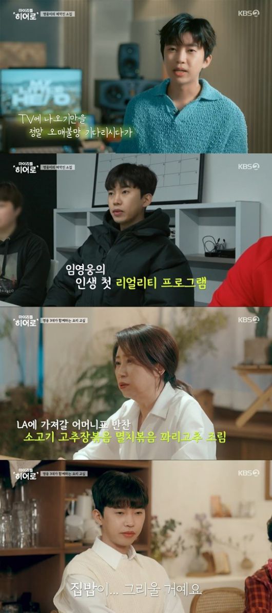 27일 오후 방송된 KBS2 임영웅 단독 리얼리티 예능 '마이 리틀 히어로' 첫 회에서는 임영웅이 생애 첫 LA여행 준비를 하는 모습이 그려졌다. '마리히'는 임영웅이 지난 2월, 미국 로스앤젤레스(LA)에서 단독 콘서트를 할 당시 촬영한 영상으로 만든 리얼리티 예능이다.
