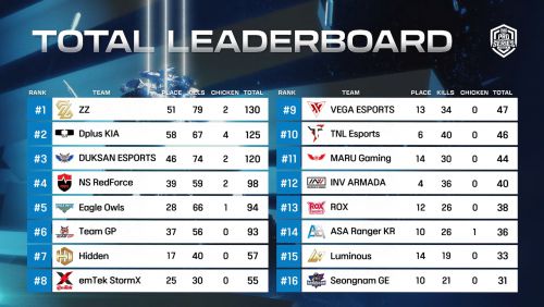 2위는 디플러스 기아(125점)가 차지했으며, 3위는 덕산 이스포츠(120점), 4위는 농심 레드포스(98점), 5위는 이글 아울스(94점) 등의 순으로 자리했다.