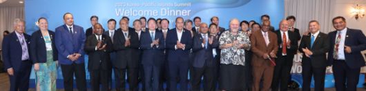 대한상공회의소는 한국과 태평양도서국 간 첫 정상회의 개최를 축하하기 위해 지난 28일 서울 광진구 그랜드워커힐서울 애스턴하우스에 이들 국가 정상들을 초청해 환영 만찬을 가졌다고 29일 밝혔다. 이번 행사는 해양수산, 재생에너지 문제 등 태평양도서국이 실질적으로 필요한 수요에 맞춰 경제 협력 교점을 더욱 늘려가기 위한 차원이기도 하다.