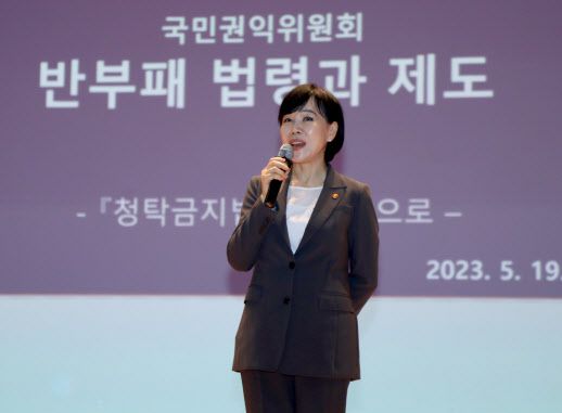 전현희 국민권익위원장이 지난 5월 19일 경기 안양시 동안구 안양시청 강당에서 직원을 대상으로 청탁금지법 특별 강연을 하고 있다. 사진은 기사와 무관. (사진=연합뉴스) |